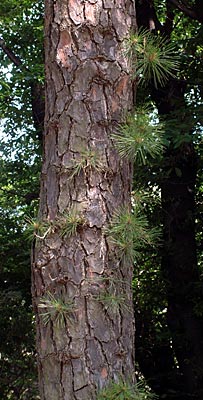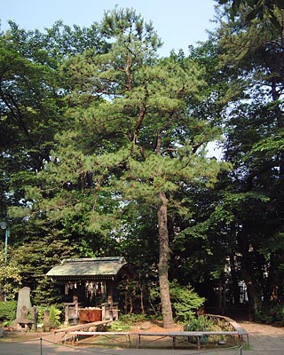 | ●三鈷の松(胴吹三葉の松) 樹齢100年以上とされ、同種 のものは高野山金剛峯寺にあ りますが、当山のものは、特 に幹の胴部からも芽吹くので, 大変めずらしい松といわれて います。 |